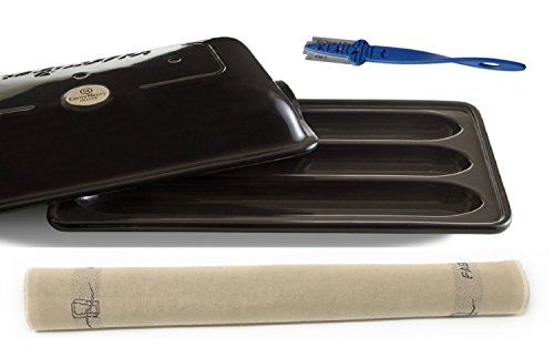 Product Description Create beautiful crusty artisan baguettes in your home kitchen using this baguette baking set. The Charcoal Ceramic Baguette Baker, Couche, Lame Set features the Emile Henry Ceramic Charcoal Baguette Baker, a Mure Peyrot Lonquet Bread Scoring Lame, and a baker's couche proofing cloth, and is the ideal companion for making crusty demi-baguettes to use for sandwiches, dipping, brushetta or garlic bread.