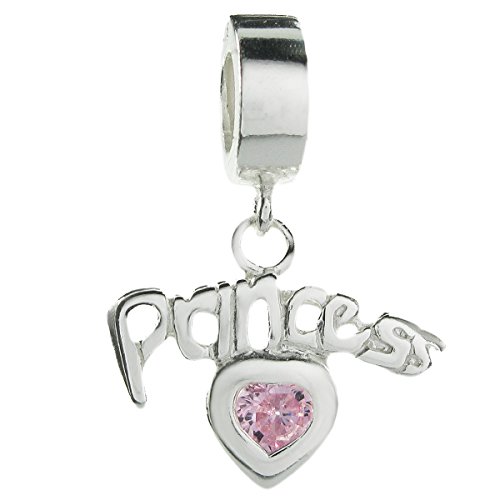 -. Title : Sterling P.R.Incess Love Heart Pink Cubic Zirconia European Style Dangle Bead Charm