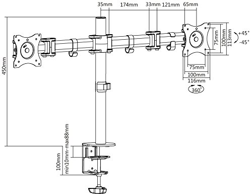 -. Binding : Office Product -. Brand : Rocelco -. EAN : 0693285000690 -. Feature : Fits 13"- 27" flat panel Computer monitors & TVs up to 17.6 lbs. / Fits VESA 50x50mm, 75x75mm & 100x100mm. / Swivels 180 Degree at interface, center pivot & pole with tilt adjustment 15 Degree. / Includes adjustable clamp to securely mount to any desk or surface up to 5cm/2" thick. Maximum extension 415mm/16.34" / Double articulated arms makes it easy to position screen exactly where you want it -. Label : Rocelco, Inc. -. Manufacturer : Rocelco, Inc. -. Model : R DM2 -. MPN : R DM2 -. NumberOfItems : 1 -. PackageQuantity : 1 -. PartNumber : R DM2 -. ProductGroup : Office Product -. ProductTypeName : OFFICE_PRODUCTS -. Publisher : Rocelco, Inc. -. Studio : Rocelco, Inc. -. Title : Rocelco Dual Monitor Mount, Double Articulating Design, Fits Two 13 - 27 inch Monitors (DM2) -. UPC : 693285000690