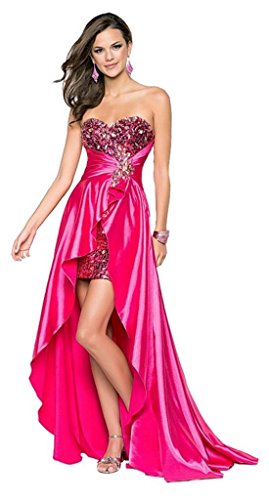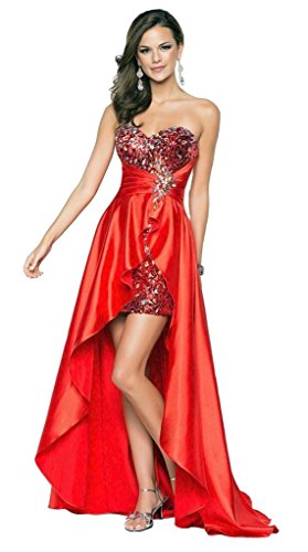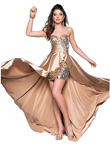 Strapless A Line High Low Design Evening Dress,Embellished With Sequin Beaded,Back Closure Lace Up