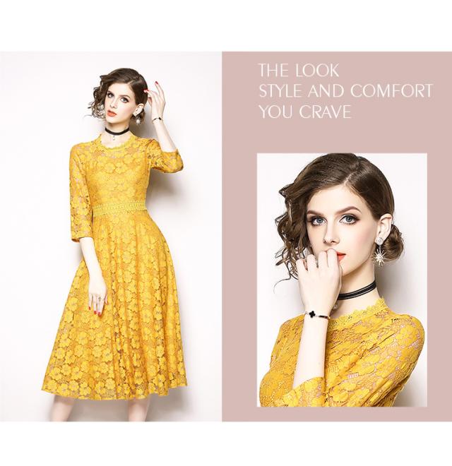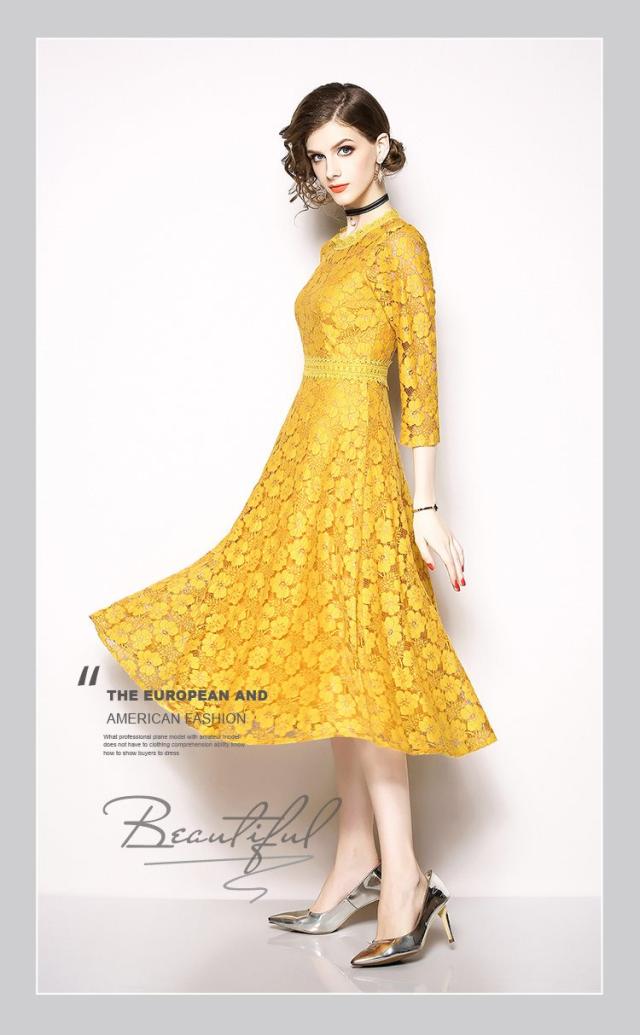 レース 刺繍 マキシ丈 七分丈 ドレス ワンピース 結婚式 二次会 パーティー 女子会 ディナー 卒業式 謝恩会 コンサート