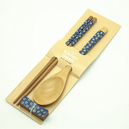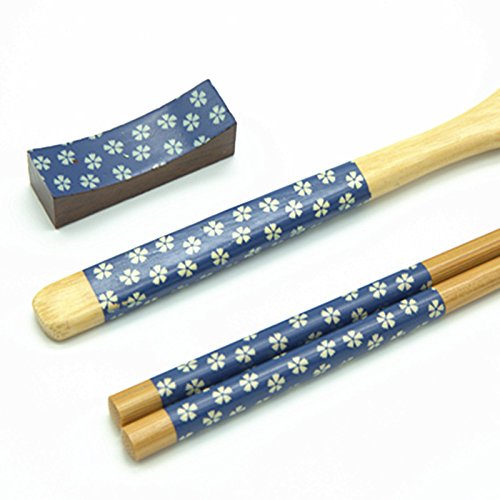Totally Bamboo 3-Piece Set Bamboo Spoon,Chopsticks and Wooden Chopsticks Rest, Japanese Style 4 Color Available (Blue2)
