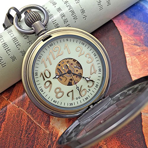 -. Title : OGLE Bronze Waterproof Large Digital Luminous Magnifier Chain Fob Self Winding Automatic Mechanical Pocket Watch