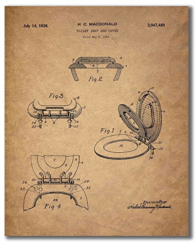 Bathroom Patent Prints This set of 4 beautiful bathroom patent prints will make a great addition to any restroom. Each 8x10 print will look fabulous as framed decorative wall art. What great conversation pieces... you'll have your guests talking!