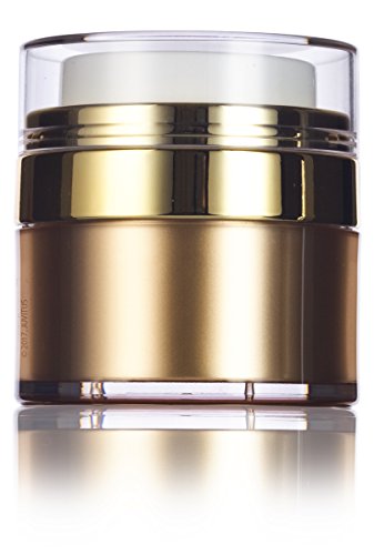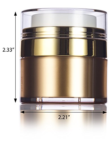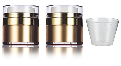 Gold Airless Refillable Jar 0.50 oz / 15 ml (2 pack) for Home or Travel, keeps out bacteria and air changing oxidation from your skin care products - durable, leak proof, and shatterproof