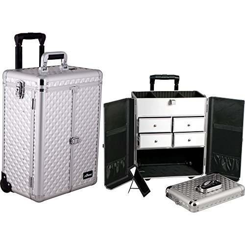 Sunrise E6305DMSL Silverdiamondinterchangeableprofessionalrollingaluminumcosmeticmakeupcraftstorageorganizercasefrenchdooropeningwithsplitdrawers-E6305, Silver
