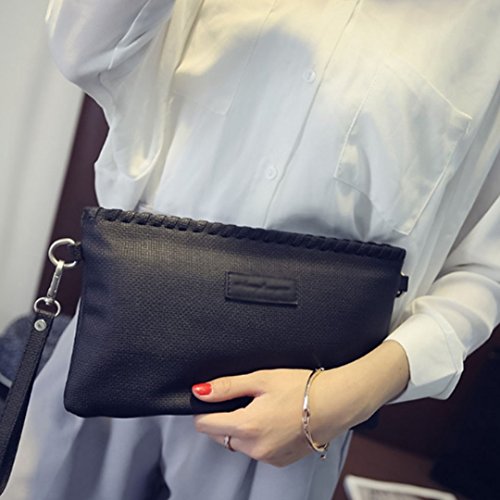 -. Feature : Material: Soft PU leather, Poly-cotton lining; Heavy duty metal zippers, smooth and durable. / Purse Dimension (L*H): 28*16CM/11*6.3IN, "fit just right"?purse for women girls / Simple solid color and classic envelope wristlet clutch, unique leather texture, elegant and stylish, ?wonderful clutch/handbag with an unbeatable P.R.Ice tag. / Structures: 1 zippered main compartment with 2 open pockets & 1 zip secret pocket inside; 1 back zipper pocket / Roomy enough to organize everything such as big cellphone, wallet, keys, small cosmetics necessities, tissue, etc.