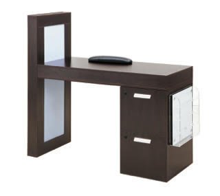 Studio : ASD Publisher : ASD Binding : Misc. Product Description The Jasmine Manicure Table is a simple yet stylish design, proven to be sturdy and durable. Finished in laminate, the Jasmine features 2 locking cupboards for storage, matching wrist rest and side mounted nail polish rack. It features LED lighting on the side, which is very charming when the light is turned on. The top surface is large and easy to clean. Dimensions: 51½" L x 19½" W x 47½" H (Left Side) x 32" H (Right Side) 0