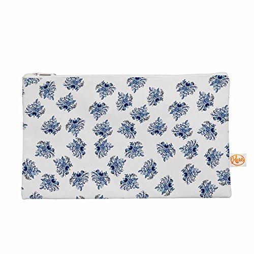 KESS InHouse Jennifer Rizzo "Blue Garden Flowers" Floral White Everything Bag, 8.4" x 4" (JR1008AEP03)