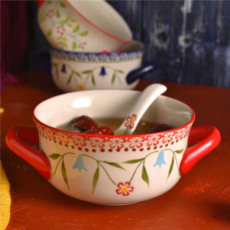 美式陶瓷创意双耳碗防烫手泡面碗早餐碗陶瓷焗饭碗烘焙烤碗汤碗