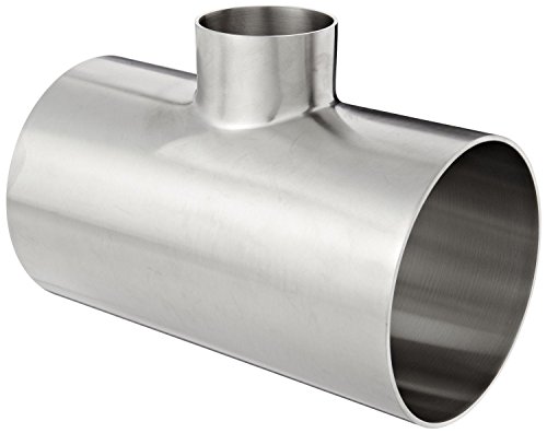 This Dixon B7RWWW series polished weld reducing tee sanitary fitting is made of stainless steel 304 and has tube connections. This fitting is T-shaped and has three openings to connect and branch three pipes, two on the main run and one branch at a 90-degree angle from the middle of the tee. Pipe dimensions for tees are represented as A x B x C. “A" and “B" indicate the main run on the fitting, and “C" indicates the branch. The branch on this fitting has a reduced diameter from the main run. It is made of stainless steel 304 for resistance to corrosion and high temperatures and has a maximum operating pressure rating of 250 pounds per square inch (psi) at 70 degrees F ambient temperature. This polished weld reducing tee sanitary fitting meets 3-A Sanitary Standards Number 63-03 for sanitary fittings (authorization number 621) and is suitable for use in food, beverage, and dairy applications.