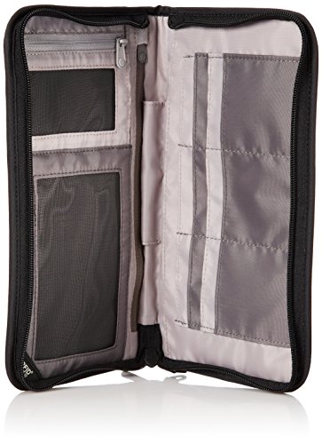 -. Feature : Detachable wrist strap with loop that tightens to your wrist if your gear is accidentally dropped or snatched / 13 card slots including mesh slot / Organisation for cards and notes / Outer zippered coin pocket / Mesh passport holder (fits Euro passport)