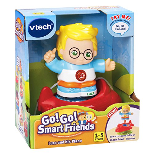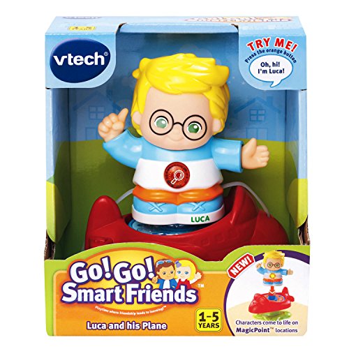 -. Binding : Toy -. Brand : VTech -. EAN : 3417761623008 -. Feature : Toy for little people has 1 MagicPoint located on the toy plane; great infant learning toy / Music toy plays 3 sing-along songs and friendly phrases; toddler toy is perfectly sized for small hands / The interactive light-up toy has a button that flashes with sounds / The early learning toy works with all Go! Go! Smart Friends accessories and playsets by VTech / Learning toy is intended for toddlers ages 1 to 5; 2 AAA batteries included for demo only, use new batteries for regular use -. IsAdultProduct : 0 -. ItemPartNumber : 80-162300 -. Label : V Tech -. Manufacturer : V Tech -. Model : 80-162300 -. MPN : 80-162300 -. PackageQuantity : 1 -. PartNumber : 80-162300 -. ProductGroup : Toy -. ProductTypeName : TOYS_AND_GAMES -. Publisher : V Tech -. Studio : V Tech -. Title : VTech Go! Go! Smart Friends Luca and his Plane -. Warranty : 90 day warranty against manufacturer defects