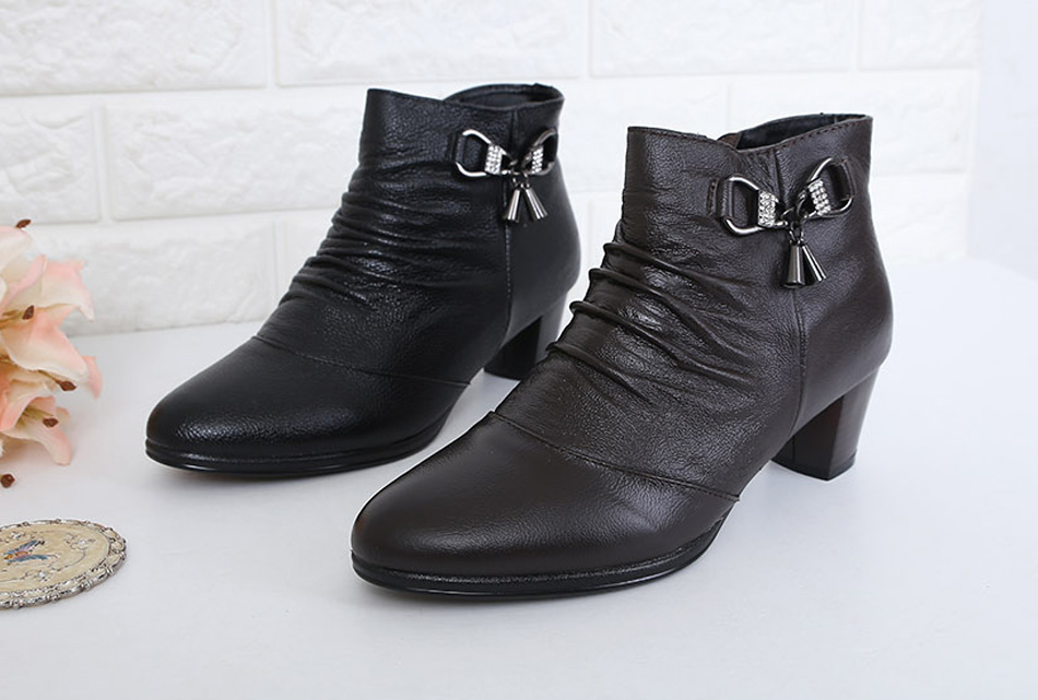 리얼가죽 퍼안감 셔링 앵클부츠 입니다 슬림한 토우라인이 발끝까지 가지런히 모아주어 발이 작고 슬림하게 보여지며 부드러운 리얼가죽 소재로 제작되어 더욱 깔끔하면서도 고급스러운 느낌의 슈즈입니다 발등위의 셔링이 자연스럽게 자리잡고 있으며 사이드의 큐빅장식이 밋밋하지 않게 포인트가 되어주어 멋스럽습니다 안감전체가 퍼안감으로 제작되어 보온성이뛰어나 따듯하게 신을수 있습니다 인사이드 지퍼 클로징 으로 신고 벗기에도 간편합니다 하나쯤 소장하고 계시면 다양한 룩에 자연스럽게 스타일링하기 좋은 슈즈로 추천드립니다 활용도 만점의 데일리아이템 소개합니다.