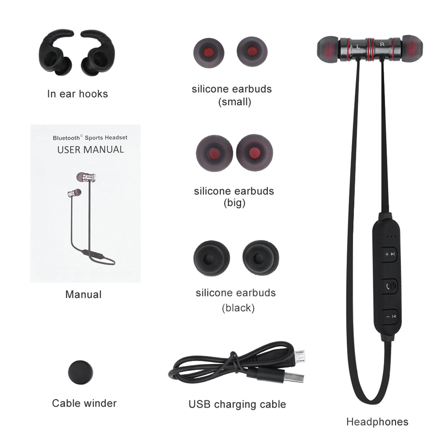 [Accessory] USB cable * 1, English manual * 1, Ear tip set * 2, Ear holder * 1