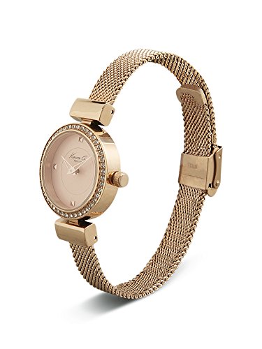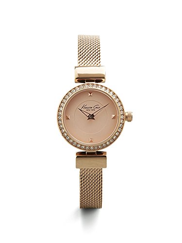 Rose gold-tone watch featuring crystal-encrusted bezel and matte round dial with pyramid stud markers and skeleton hands