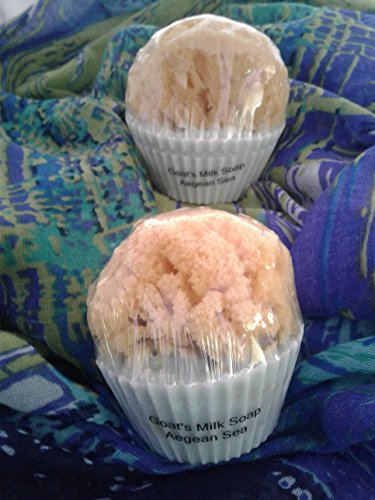 Goat's Milk Mini "Cupcake" Soap w/embedded Natural Sea Sponge (Aegean Sea)