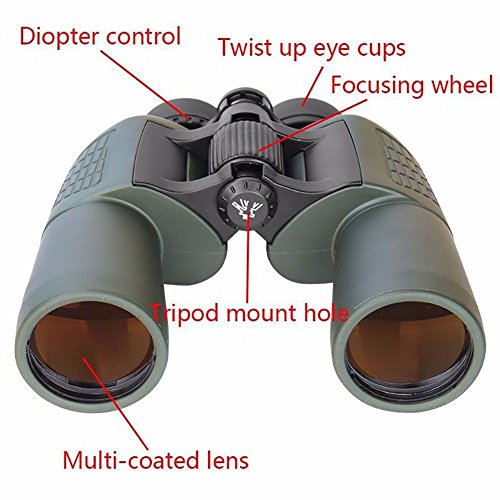 Large lens design, 22MM lens are more comfortable to view objects without eye fatigue, dizziness, with a vision combination of wide angle and HD / Night vision: Large 50mm objective lens, even in low light conditions, such as at dusk and dawn, it can also provide the maximum brightness of the image. IPX7 water resistant, can work normally in heavy rainy day / 2pcs button batteries are required, included in the package (the battery model is LR936/AG9,cell battery)