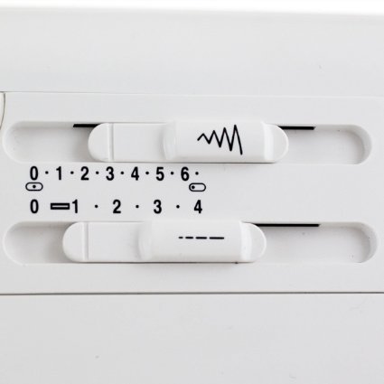 -. Feature : Built-in needle threader / Reverse stitch lever / Snap-on presser feet / Foot pressure adjustment / 18 stitches, 1 one step buttonhole