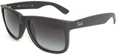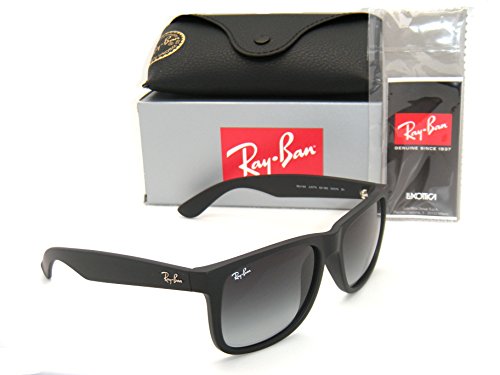 100% Authentic and brand new. The Package will contain: RB 4165 601/8G 55mm, Ray-Ban Original Box, Case, Cleaning Cloth, Literature Condition: New , unused, and unworn in the original packaging Gender: Unisex Protection: 100% UV400 Lens Technology: Gradient Style: JUSTIN Made in: Italy Frame Color: RUBBER BLACK SIZE: 55MM Lens Color: PLASTIC GREY GRADIENT Frame Material: RUBBER UPC: 805289526575 The sunglasses come in either BROWN CASE -or- BLACK CASE