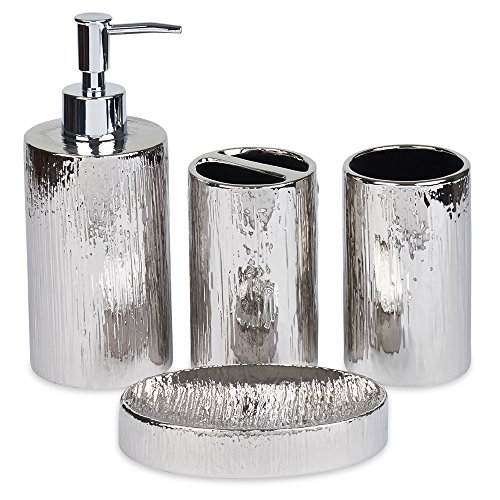 Natural Design Silver Ceramic Bath Organizer Set