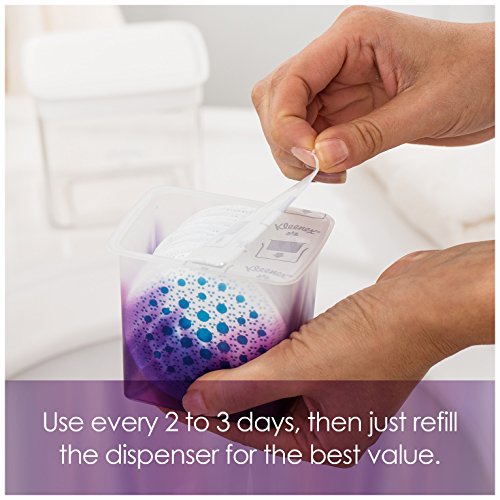 Introducing Kleenex Exfoliating Cushions, an exclusive combination of dual-sided, multi-layered fabrics and a gentle cleanser infused with a pro-vitamin complex that exfoliates and polishes skin. Simply add water to the self-foaming exfoliating pads. The blue side of the cushion features a scrubbing texture to massage and exfoliate skin, then flip the cushion to reveal the buffing side to smooth and polish. Keep the refillable dispenser and pop in a budget-friendly refill to protects one-month's supply of 12 cushions. Designed to reveal a healthy, more radiant complexion in just one use, these disposable facial cleansing pads are dermatologist-tested, hypoallergenic and made for all skin types. Use facial exfoliator two to three times a week to brighten and clean skin. Use Instructions Use 2-3 times per week in place of regular facial cleansing. For best results: 1. Add water to blue side and rub pad between fingers to form lather. 2. Use the blue side on the forehead, cheeks, nose and chin. 3. Use the white side as a finishing polish.