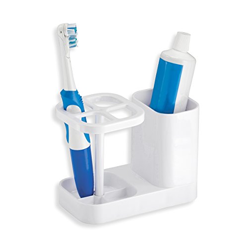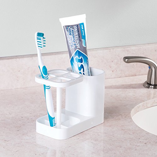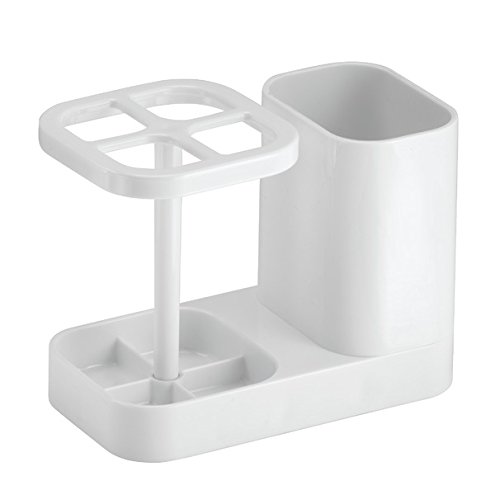 mDesign Bathroom Organizer, Dental Center Toothbrush and Toothpaste Holder - White