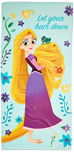 Disney Tangled Let Your Hair Down 28" x 58" Cotton Bath, Pool , Beach Towel, Purple/Teal/Yellow