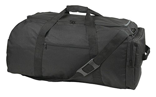 -. Brand : ProEquip -. Department : mens -. Feature : MATERIAL: 600D Polyester w/ Vinyl Backing / SPECIAL FEATURE: Becomes a Backpack with Straps that come out of the bottom of the duffle bag! / FEATURES: Large U-Shaped main zippered compartment, zippered front pocket, zippered bottom hidden backpack straps and two end handles. Becomes a backpack with straps, perfect for camping. / SIZE: 31" X 15" X 15" COLOR: Black -. PackageQuantity : 1 -. ProductGroup : Apparel -. ProductTypeName : LAGE -. Size : X-Large, Large-medium -. Title : 31" ACU Extra Large Duffel Bag & Backpack, Travel, Camping, Hiking, Sports, Black