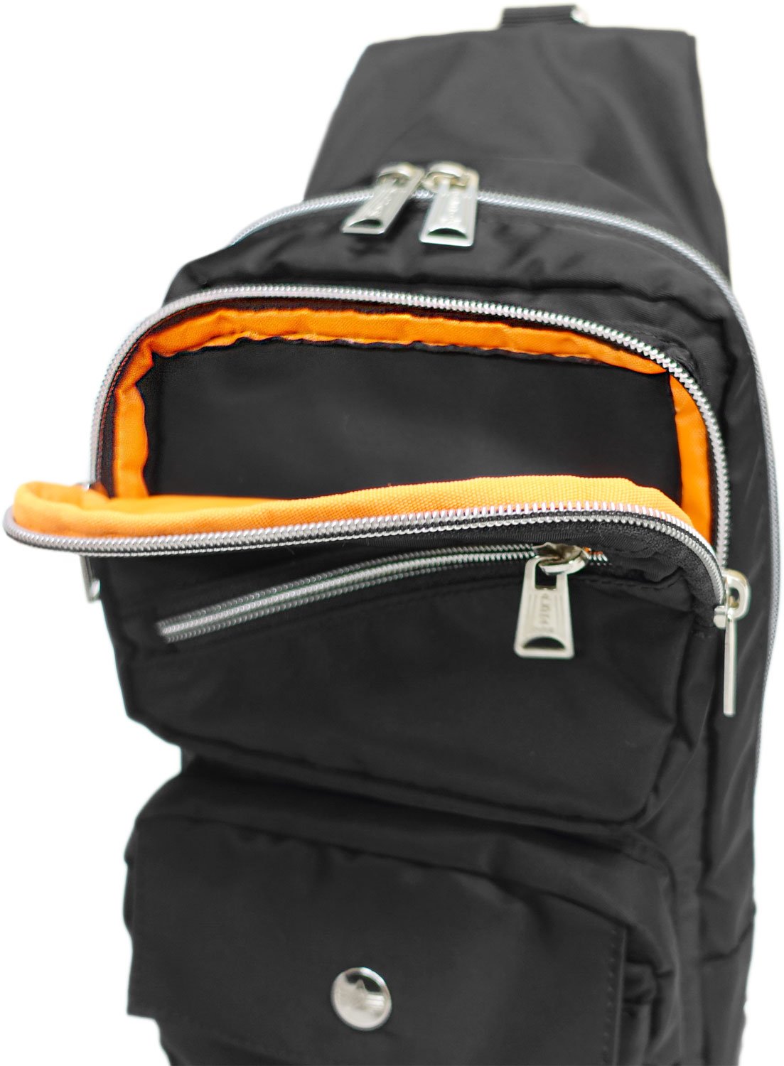 It is a vertical type body bag that fits the body.