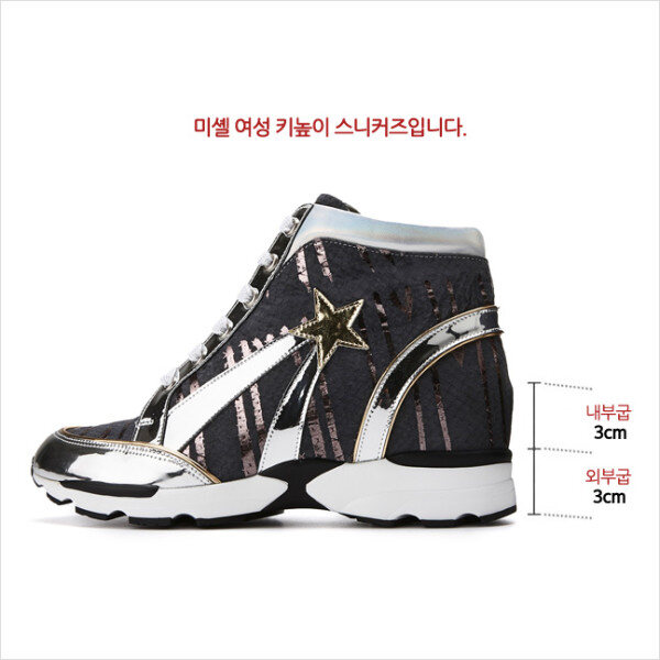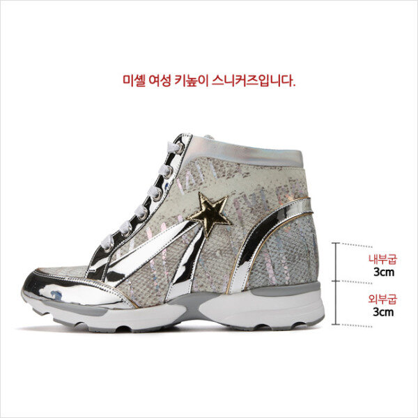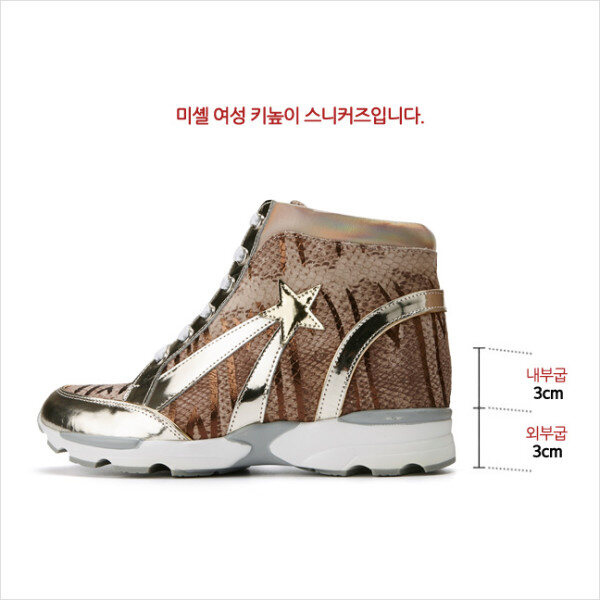 여성 키높이 스니커즈소재: 소가죽색상: 화이트, 베이지, 블루굽: 6CM 몰드 (속굽 3CM )