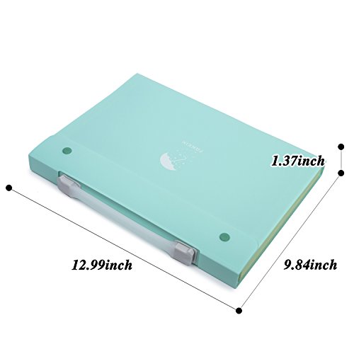 Dimessions: 12.99" L x 9.84" W x 1.37" H, which makes it suitable for daily filing and storing of documents; Fit A4 Size and Letter Size. It can hold approximately 400 sheets.