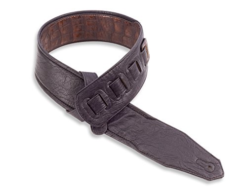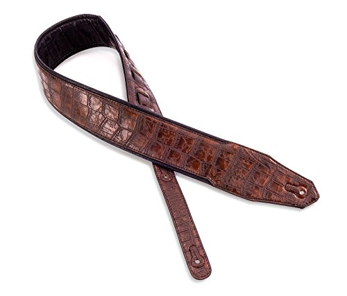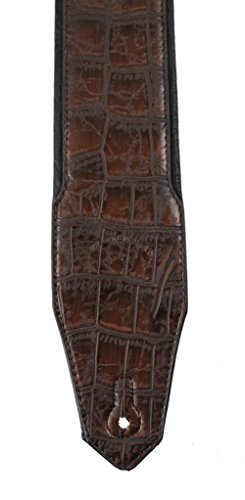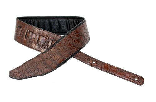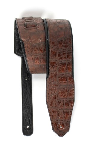 -. Feature : Premium Quality Handmade 3" Wide Guitar or Bass Strap / Chocolate Brown Gator Pattern Top Welt / Ultra Comfortable Padded Black Glove Leather Back / Double Reinforced End Caps / Adjustable From 43"-52"