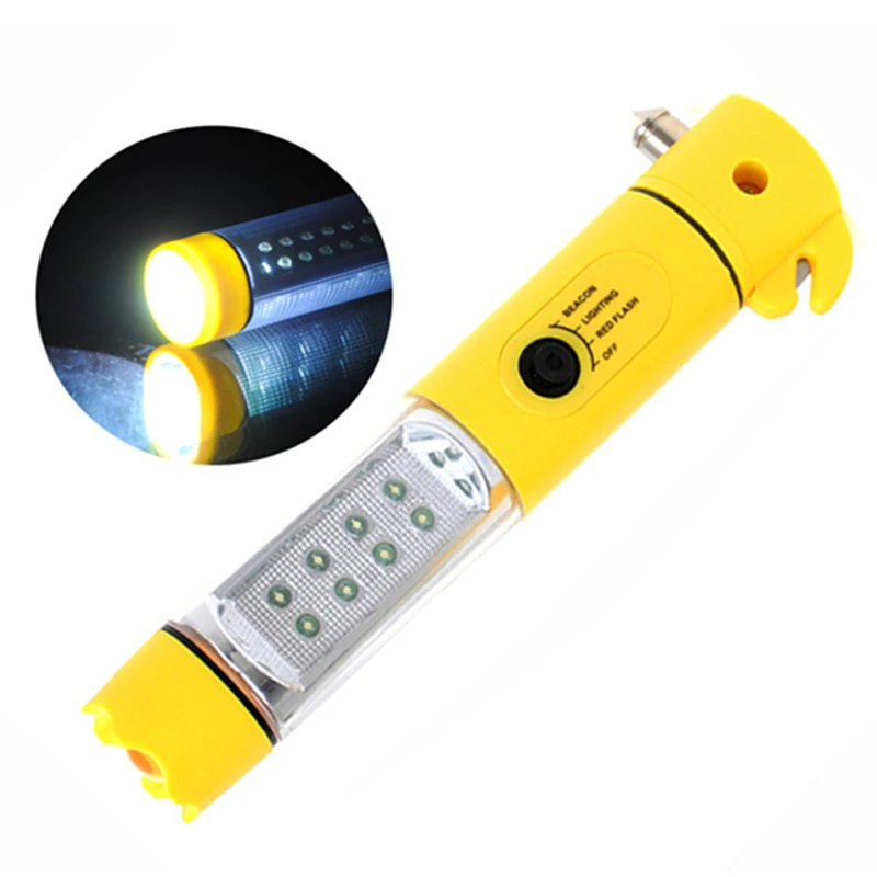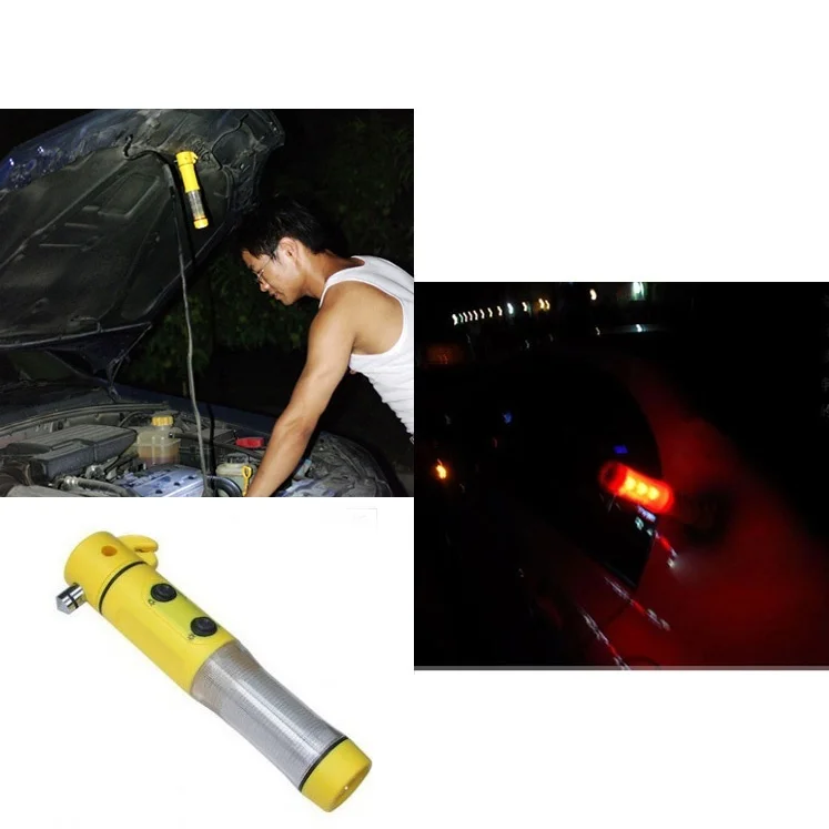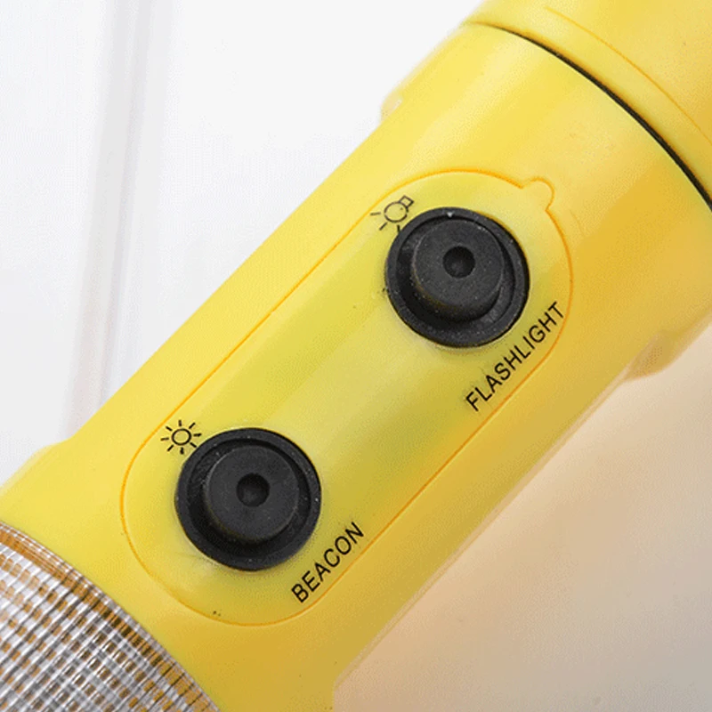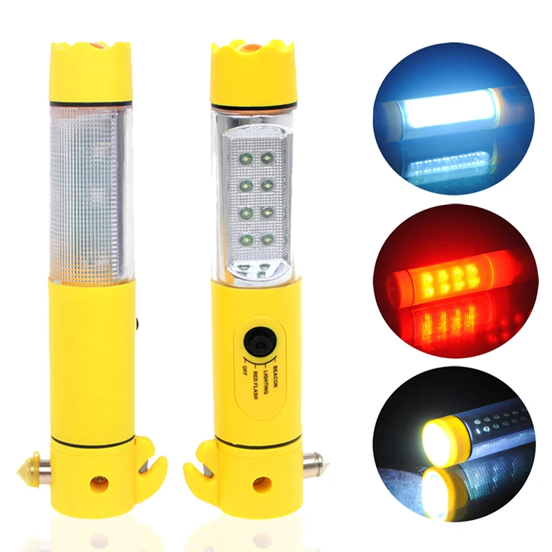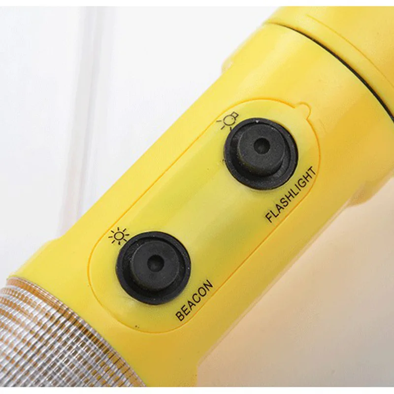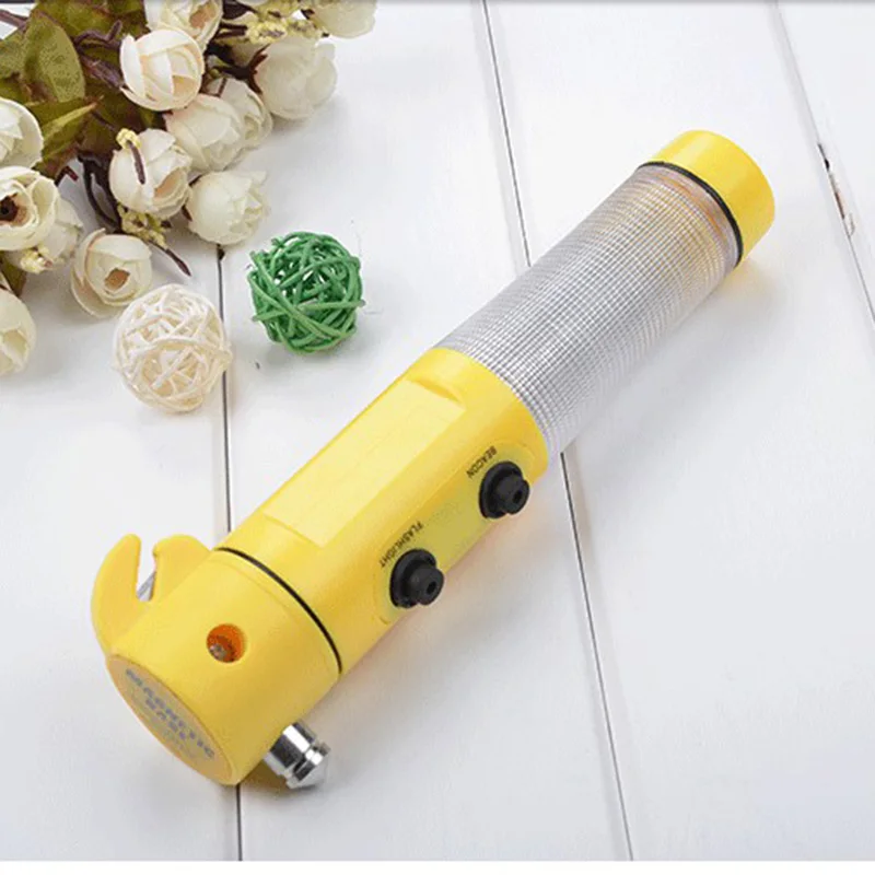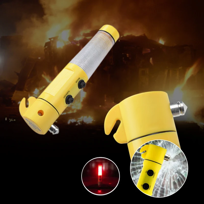 4 Functions: torch, Beacon light, belt cutter, emergency hammer