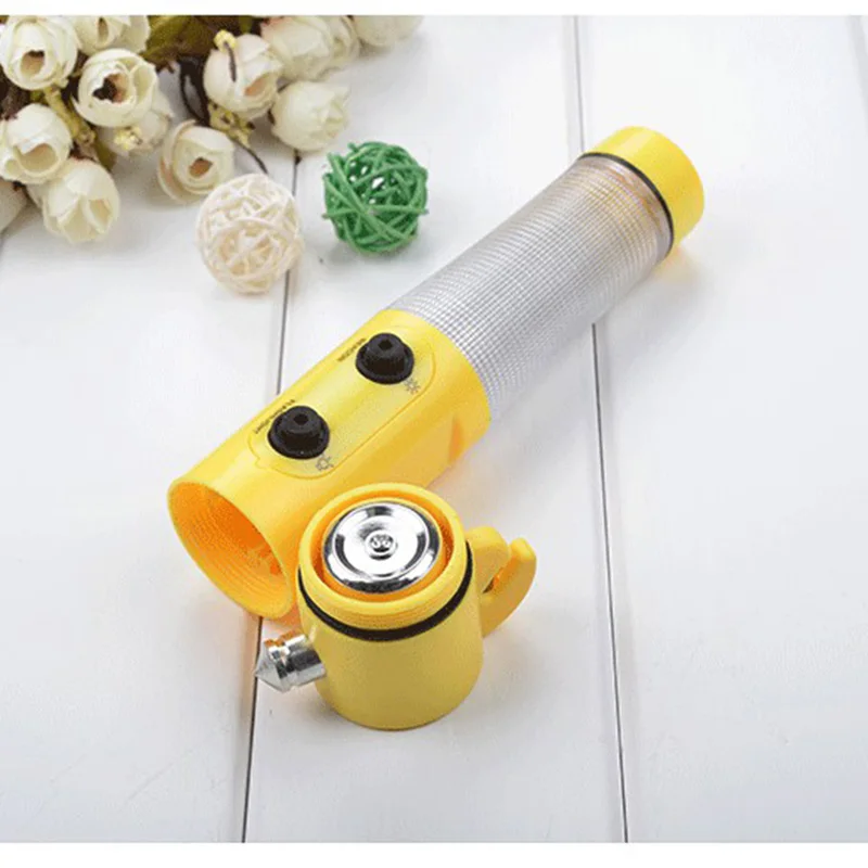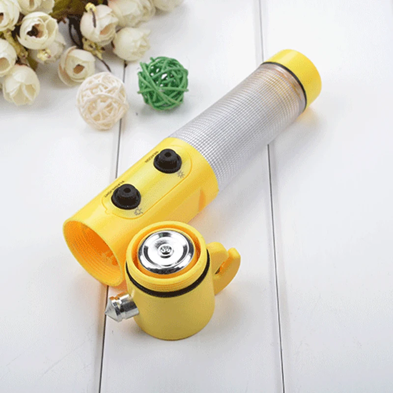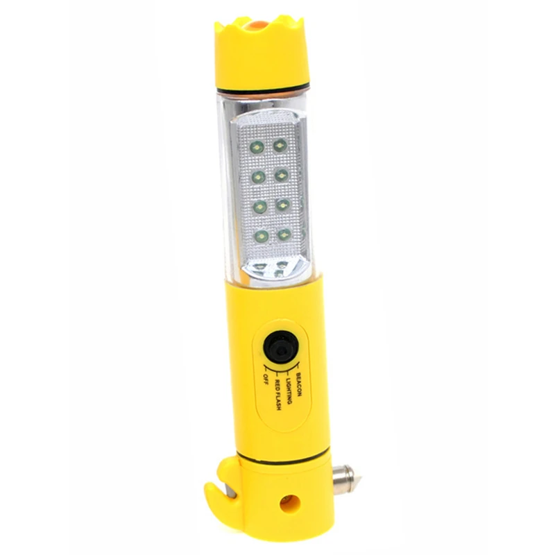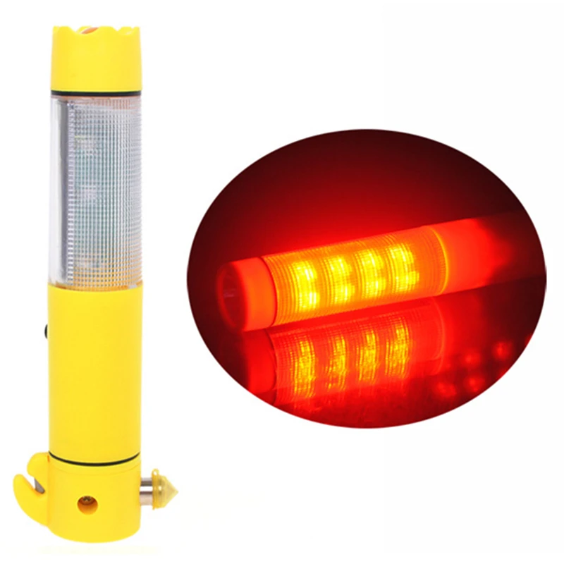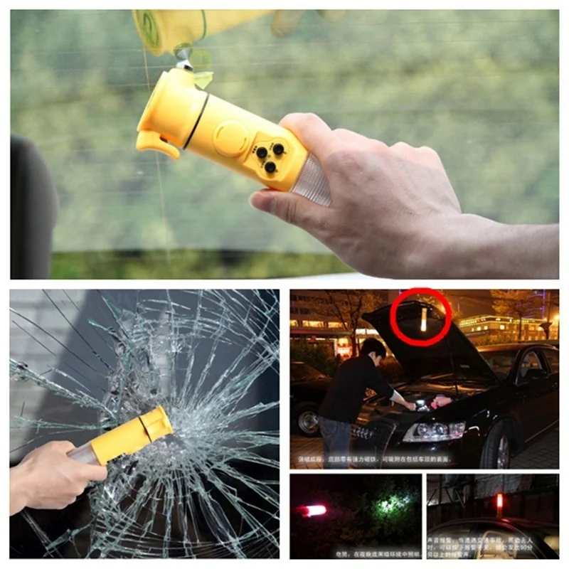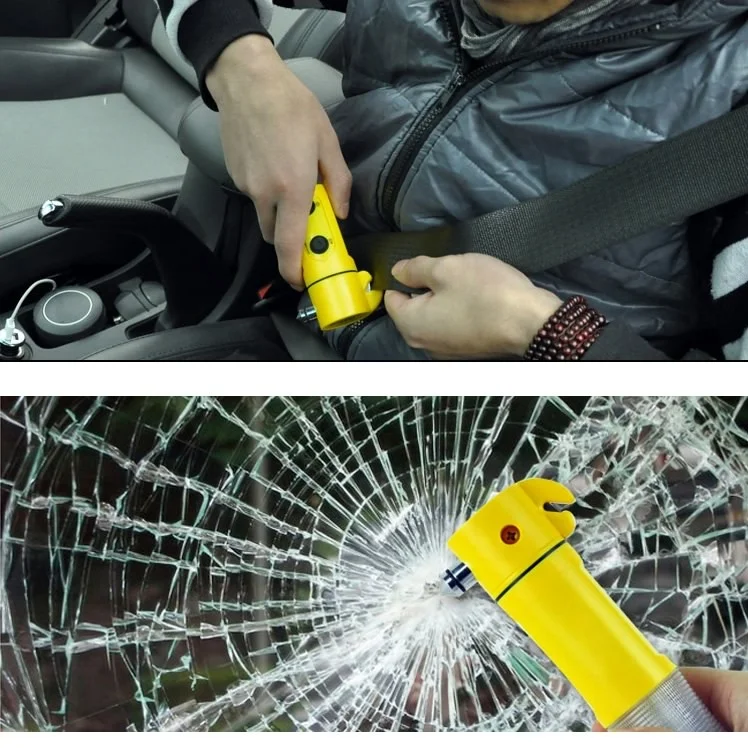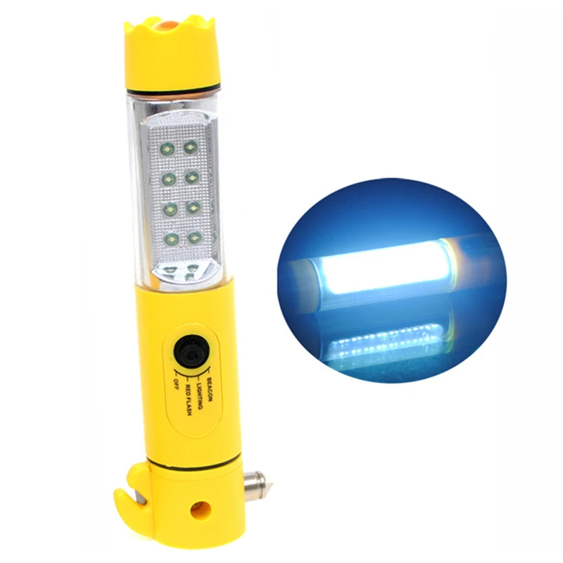 4 Functions: torch, Beacon light, belt cutter, emergency hammer