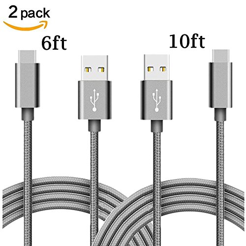 -. Feature : 2PCS USB C Cables in 6ft 10ft length are ideal for usage while charging in home, cars, office travel and more. / Stylish nylon fiber jacket makes it stand out from bunch of cables and provides higher durability and increased flexibility with tangle-free. / Extreme durability & Tangle-Free Design : With a tested 6000+ bend lifespan, Features an ultra-durable nylon-braided jacket and seamlessly molded joints adds additional durability and nice looking. / Compact aluminum connector shell head adds to extend service life getting away from the risk of crack or other kind of break. / Compatibility: work well with Samsung Galaxy Note 8/S8/S8 Plus, LG G6/G5/V20, Google Pixel/Pixel XL, Nintendo Switch, New MacBook, Nexus 5X/6P, OnePlus 3T, Lumia 950/950XL, HTC 10, Moto Z,ChromeBook Pixel, ZTE Zmax Pro and more.