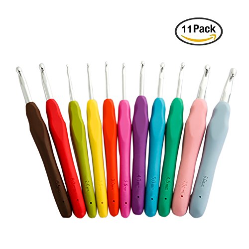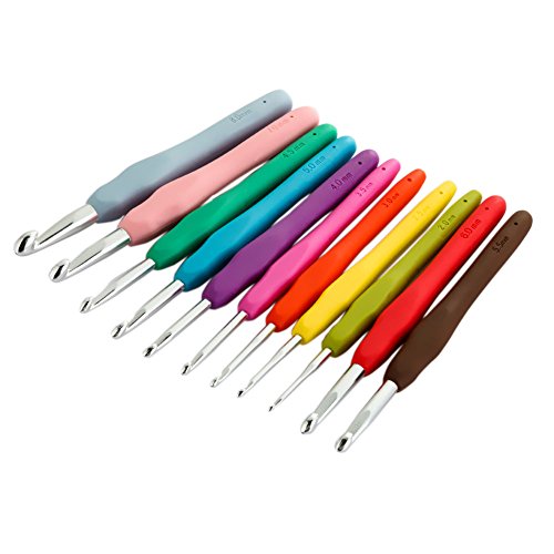 Plum Garden 11pcs Hooks Needles Soft Plastic Handle Aluminum Knit Hooks Needles kit