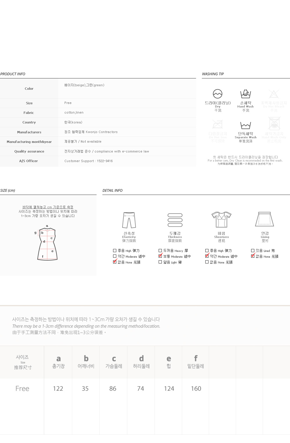 피팅 컬러와 사이즈는 그린, Free 입니다