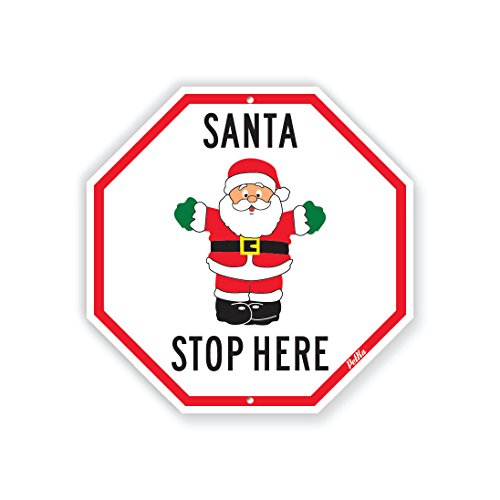 PetKa Signs and Graphics PKCM-0007-NA_10x10 "Santa Stop Here" Aluminum Sign, 10" x 10", Santa on White