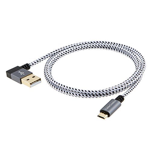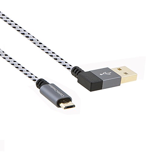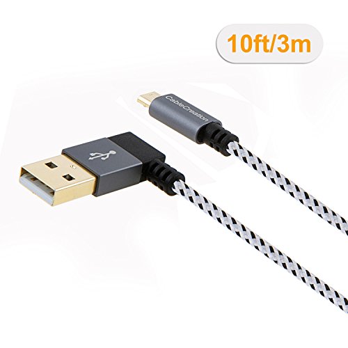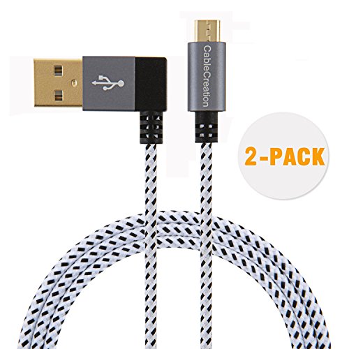 CableCreation [2-Pack] Left Angle USB 2.0 Braided Cable, 90 Degree Vertical Left USB 2.0 A Male to Micro USB Male with Aluminium Case, 10 ft/3 Meters, Space Gray