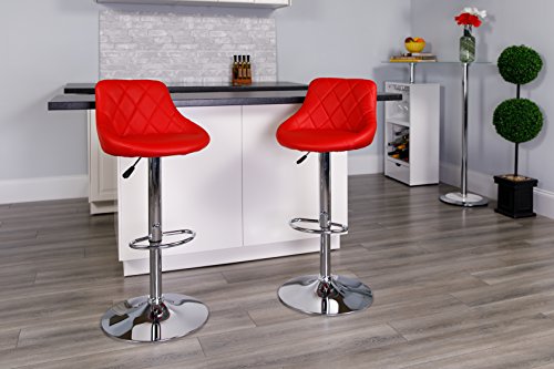 Get a touch of retro charm and lots of comfort with the Flash Furniture Contemporary Bucket Seat Adjustable Bar Stool with Chrome Base. Its quilted vinyl-upholstered bucket-seat design features a mid-back for a comfortable seat. This stool has a swiveling seat with easy gas-lift height adjustment. Its chromed disk base includes a built-in footrest for stylish comfort. A variety of color options make it customized for your home. About Flash Furniture Flash Furniture prides itself on fine furniture delivered fast. The company offers a wide variety of office furniture, whether for home or commercial use. Leather reception seating, executive desks, ergonomic chairs, and conference room furniture are all available to ship within twenty-four hours. High quality at high speeds! Quilted height-adjustable swiveling bucket-seat stool with gas lift. Dimensions: 18.5W x 19D x 33.25-41.75H in.. Seat dimensions: 14 in.. Vinyl upholstered seat and back in a variety of color options. Polished chrome disk base with built-in footrest. Quilted vinyl backrest adds retro charm. Vintage charm with a comfortable twist. Designed for residential use.Feature