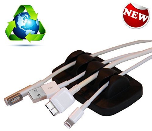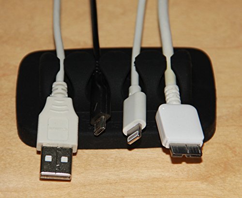 Desktop Cable Organizer, Weighted, Eco-Friendly Silicone, No Bad Smell, Bundled with 2 Reusable Cable Ties (Black)
