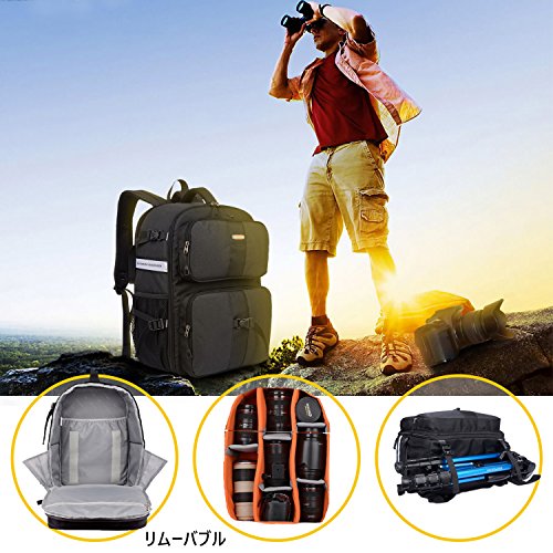 -. Title : カメラバックパック 一眼レフ用ケース 防水多機能 三脚取付可 軽量通気 大容量多機能バックパックレインカバー付き …