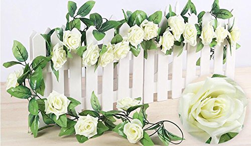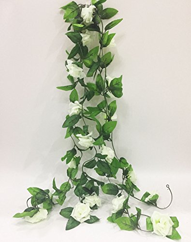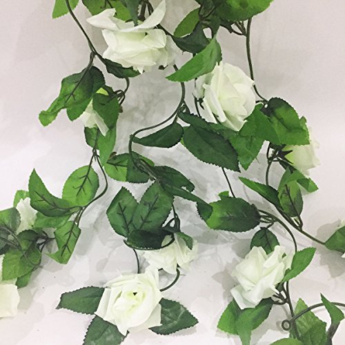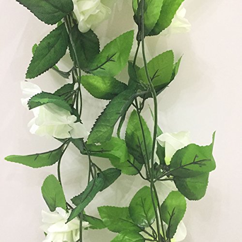 Artificial Rose Flower Vine Artfen 2 Pack Fake Rose Vine Flowers Plants Artificial Flower Home Hotel Office Wedding Party Garden Craft Art Decor 7.9 ft each vine White-Green