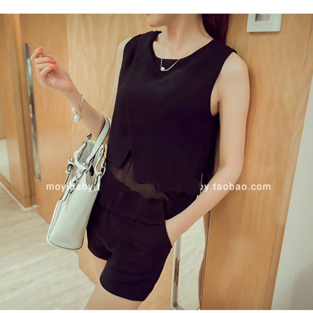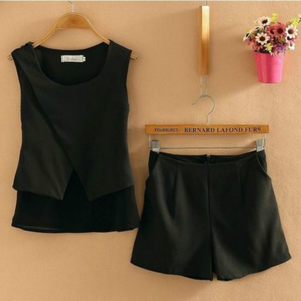 キャンディカラー☆シンプル シフォン ノースリーブトップス&ショートパンツ セットアップ