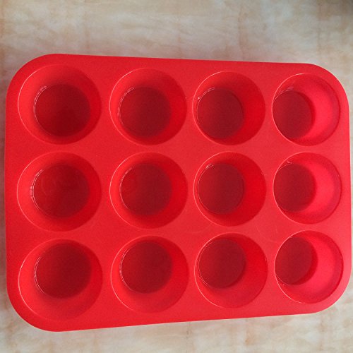 Broilmann 12 Cup Silicone Muffin - Cupcake Baking Pan / Non - Stick Silicone Mold / Dishwasher - Microwave Safe