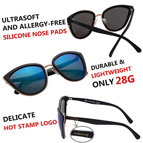 -. Feature : GREAT CLARITY OF VISION--VIVIENFANG Sunglasses use Polarized Lenses which can reduce debilitating glare and light scatter,thus reducing general eye fatigue.They provide a natural vision from transmitting original colors without any modifications. / REAL UV400 PROTECTION--100% protection from harmful UVA / UVB rays.We have added more coating on lens to ensure anti scrath,act like sunscreen for the eyes and skin around the eyes by blocking damaging higher frequencies of light. / COMFORTABLE NOSE PADS --VIVIENFANG glasses use ultrasoft and allergy-free Silicone Nose Pads which can protect your nose bridge and make you feel more comfortable.These nose pads are safe,durable and not easy to slide. / EXCELLENT GIFT CHOICE-- All VIVIENFANG sunglasses will come with exquisite packaging:Gorgeous Faux Leather Case * 1,Soft Glasses Cloth * 1, Tiny Screwdriver * 1. One size fits most, so you can choose it for all your families and friends. A great gift for anyone who loves to be in the sun! / RETURNS & EXCHANGE--We will gladly accept returns of unworn, undamaged or defective merchandise purchased on amazon for full refund or exchange within 30 days of the original purchase.