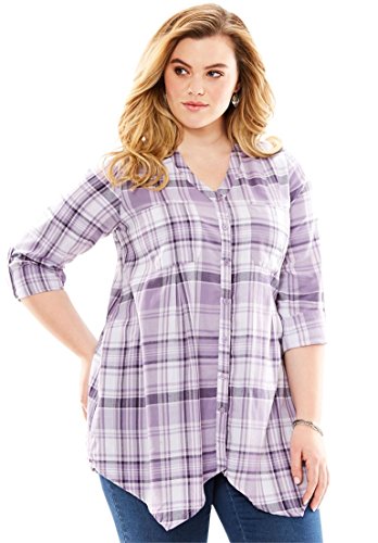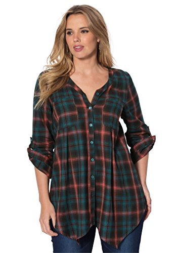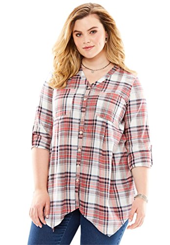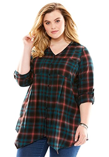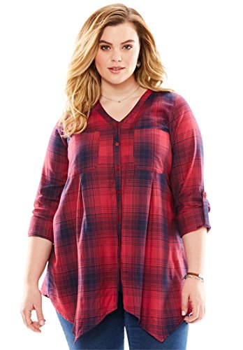 Studio : Roamans Publisher : Roamans Binding : Apparel Product Description A flannel plaid shirt that's perfect for this season. trapeze silhouette V-neck long sleeves with button tabs convert to 3/4-length 2 front chest pockets inverted back pleats hem drops to about 34" 100% cotton, machine wash, imported Women's plus size shirts, tops, tees - hankie hem plaid shirt by denim 24/7 In Style Now!Wear it on its own, or layer it, for a look that's in style every time. 0