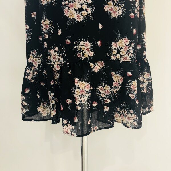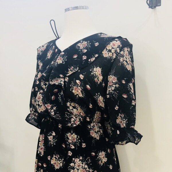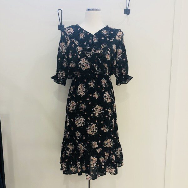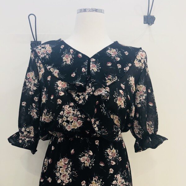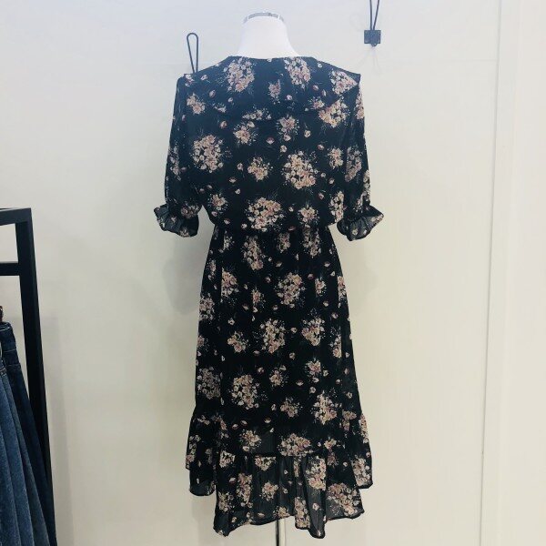 블랙 컬러의 플라워 쉬폰 원피스입니다. 소매와 넥 부분의 프릴이 러블리한 느낌으로 연출을 해주며 비침없이 가벼운 제품입니다.(총장: 어깨선부터 약 101cm)** 저희 멜로디가든매장은 상품이 매장에서 같이 판매가 이루어지기때문에 매장에서 선판매시 배송으로 받아보시는 기간이 5~7일 소요가 됩니다. 이점 양해부탁드립니다^^ 감사합니다♡**