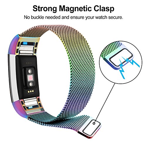 Unique magnet clasp design - Strong magnetic closure automatically stick and lock to another end of the fitbit charge 2 band, no buckle needed. Ensure your watch be secure.